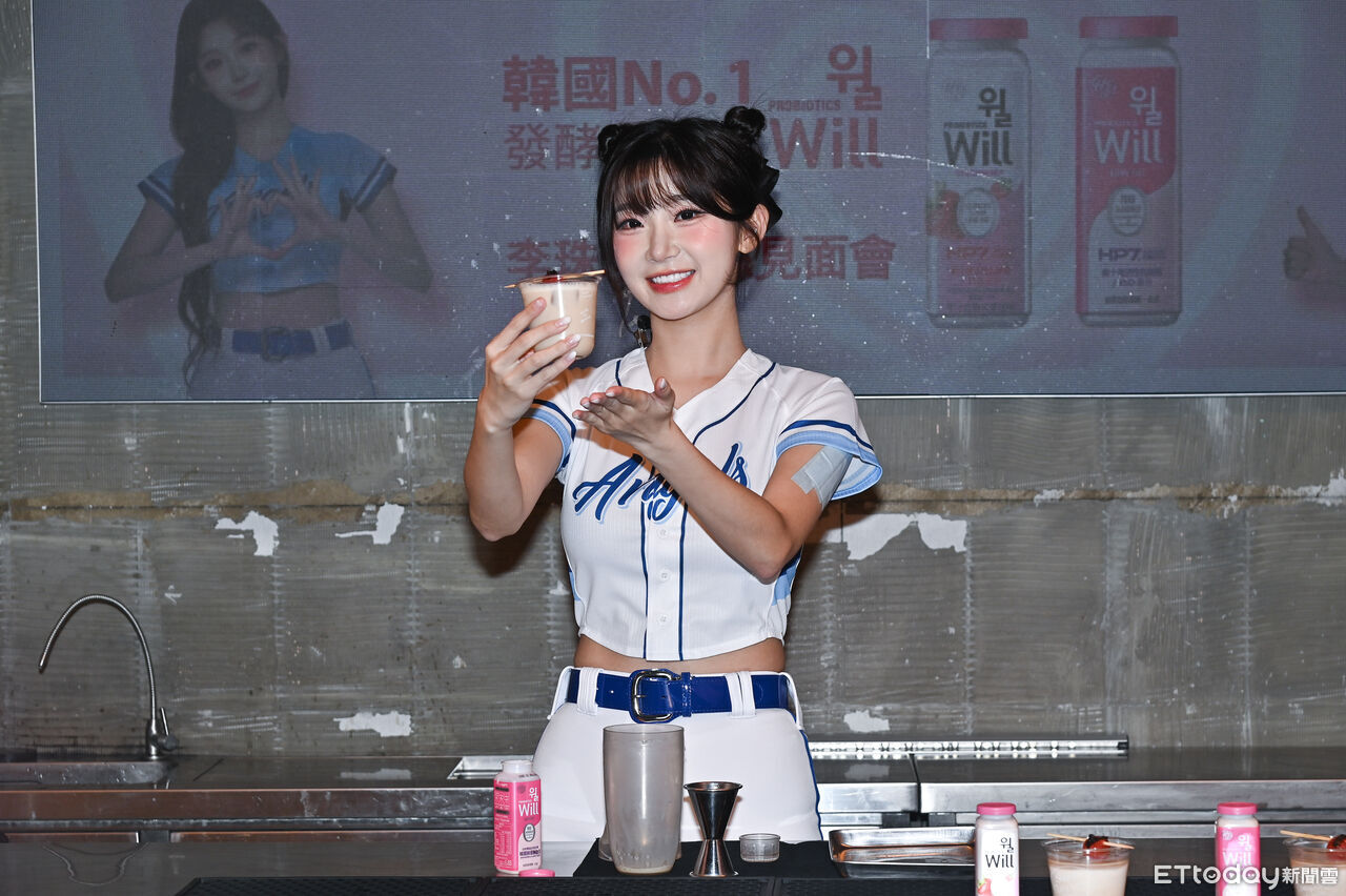 ▲李珠珢與粉絲見面記者會,現場製作飲料。(圖/記者李毓康攝)