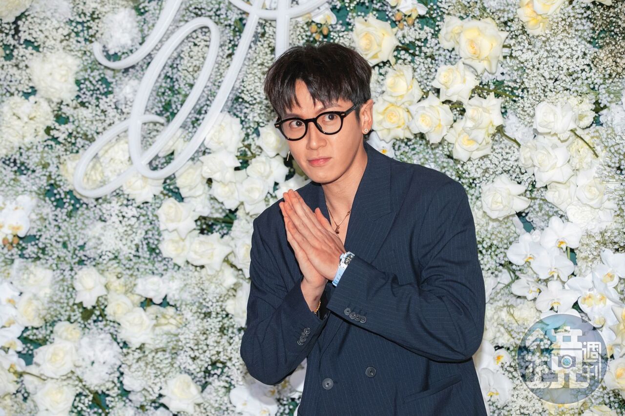 ▲柯震東剛入婚禮會場時,只接受拍照不受訪。