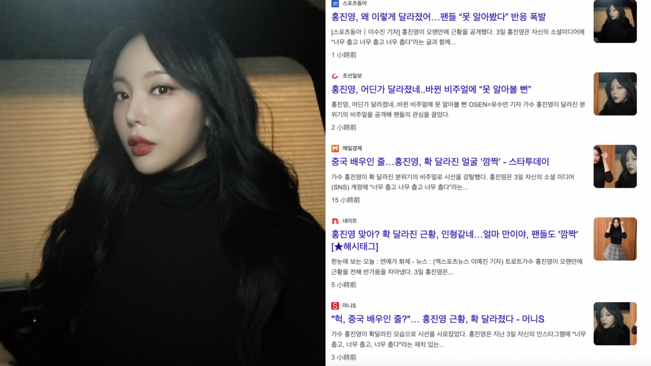 南韓「Trot女神」洪真英曾與金鐘國配對成螢幕情侶,講話撒嬌又善於討長輩喜愛,性格很圈粉。但她2020年遭踢爆碩士論文抄襲,重合率高達74%,嚴重打擊形象,並就此消失在螢幕前。她2022年曾試著推出新歌回歸,但沒有太大迴響,近日更新社群網站,卻被發現「臉部進化」,引起大批韓媒爭相報導,驚呼「還以為是中國演員」。