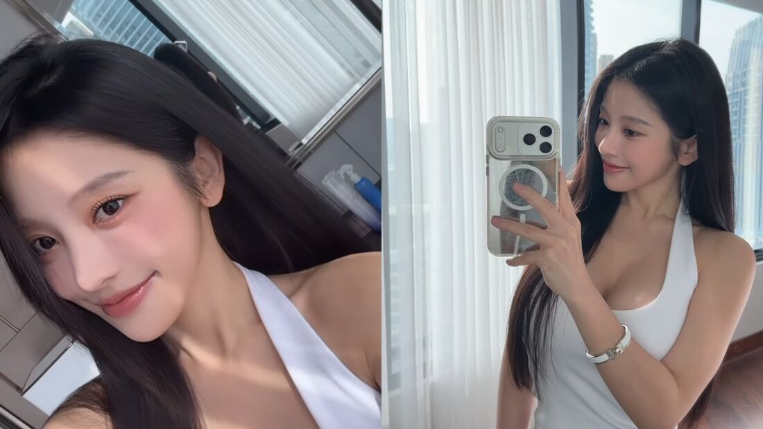 透過蔡瑞雪分享的自拍影片可見到,她身穿一件白色的削肩背心,剪裁非常貼身且低胸,完美襯托出她豐滿的上圍與纖細的肩頸線條,短版設計也露出了她結實的川字腹肌,整體氣質既休閒又帶有小性感。蔡瑞雪下身搭配深色長褲,展現率性的風格。