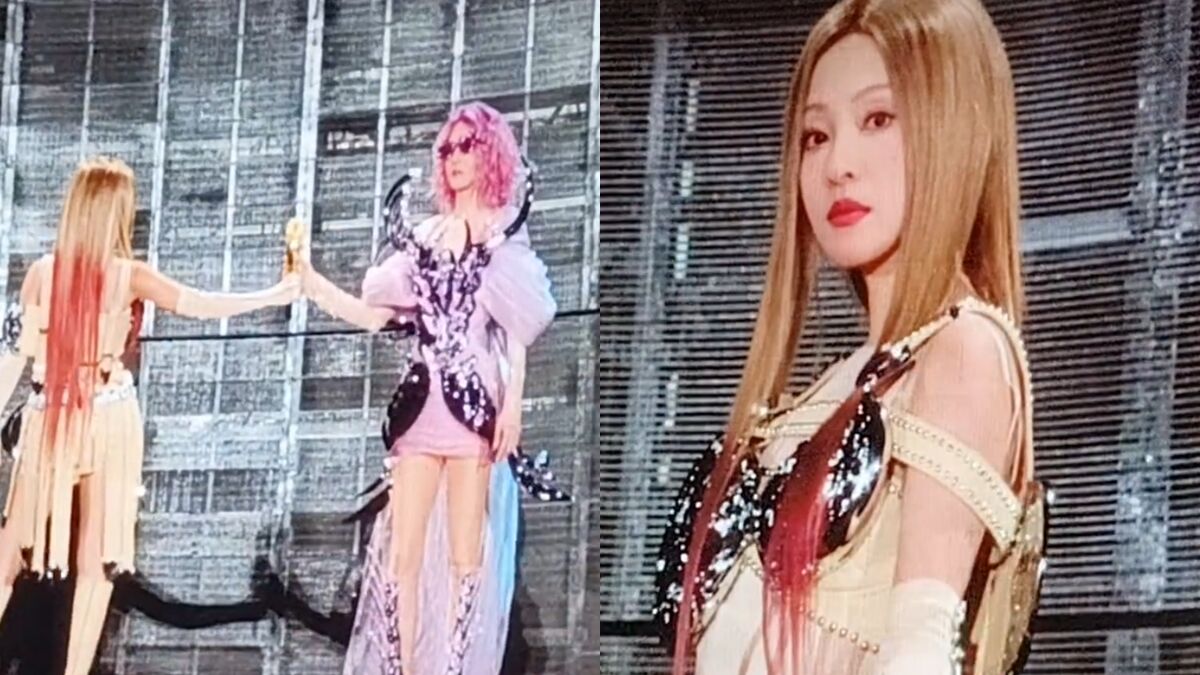 據網友分享的現場影片顯示,張韶涵本人穿著全新粉色盔甲造型,從升降台走下後,與身穿米黃色舊造型的替身「正面交會」並遞上麥克風。替身背對觀眾轉身的瞬間,大螢幕上顯示的卻是「張韶涵的臉」,形成幾乎真假難辨的AI換臉效果,讓現場歌迷驚呼連連。