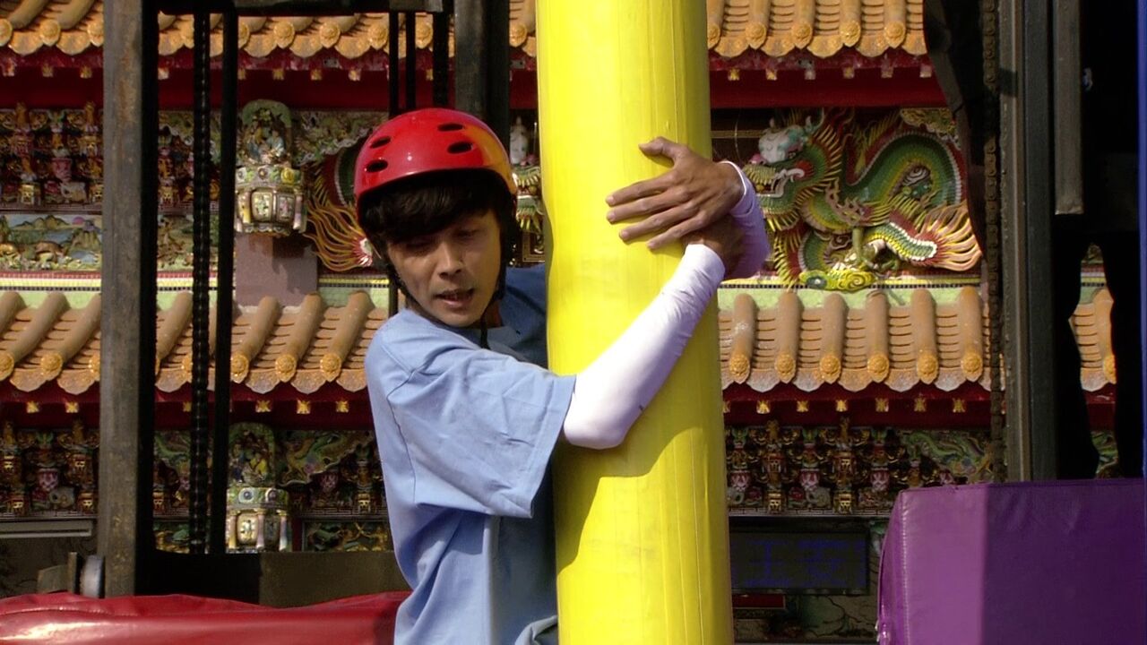 為了示範遊戲,主持人阿翔與郭忠祐率先登場。哨音一響,郭忠祐一貫展現驚人身手,輕鬆通關成功;反觀阿翔,爬到第二根柱子便陷入卡關狀態,整個人緊抱柱子動彈不得,引發全場爆笑。在眾人加油下他努力前往第三根柱子,未料剛碰到柱身便直直摔落,突如其來的「出槌」畫面讓現場驚呼連連。