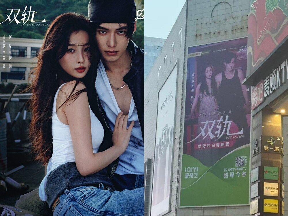 ▲《雙軌》大樓電視牆廣告疑似透露播出日。(圖/翻攝自微博)