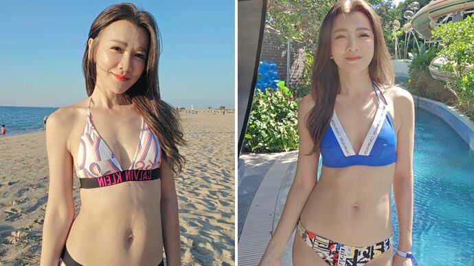 照片中,可以看到曾雅蘭換了兩套比基尼。第一套是印有幾何圖案的泳裝,格外凸顯她健康緊實的體態,小腹完全沒有贅肉。第二套則是藍白配色的泳衣和印花泳褲,自信展現纖細長腿。
