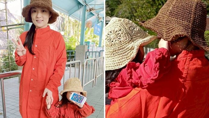 照片中,可以看到徐佳瑩和女兒一同穿上鮮紅色的長版衣服,還都戴上了風格一致的編織草帽,以可愛吸睛的「母女裝」出門,前往台北市立動物園慶生。