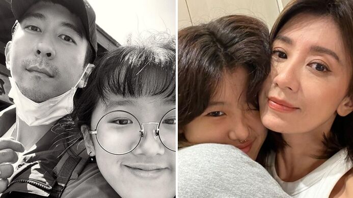 大女兒梧桐妹穿著低胸背心,對著鏡頭俏皮比YA,展現出青春的小女人韻味,與兩個妹妹咘咘、Bo妞緊緊簇擁在父母身邊,全家臉上洋溢著放鬆自在的笑容,畫面流露出濃厚且溫暖的居家過節氛圍。