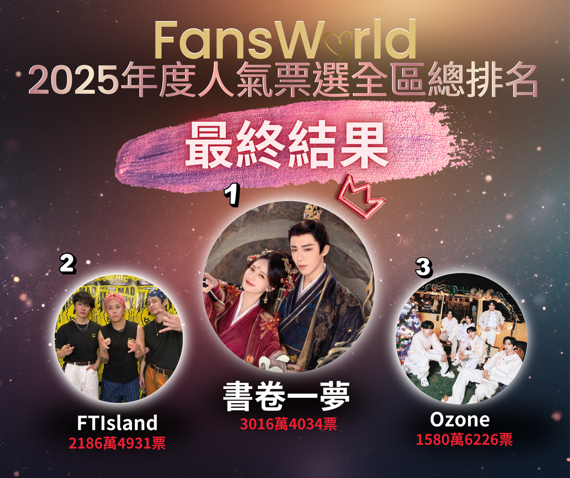 「FansWorld 2025年度人氣票選」經過一個月的激烈廝殺,最終冠軍王者終於誕生!為了慶祝這份得來不易的榮耀,FansWorld將兌現承諾,送出「台北車站K區地下街燈箱」以及「HEYPOCA小卡機廣告」重磅實體應援。為了呈現偶像最耀眼的一面,官方即日起啟動「冠軍應援圖徵選活動」,號召各路「站姐、站哥」與攝影大神提供珍藏的「神級飯拍」,讓你的作品與偶像一起閃耀台北黃金地段!