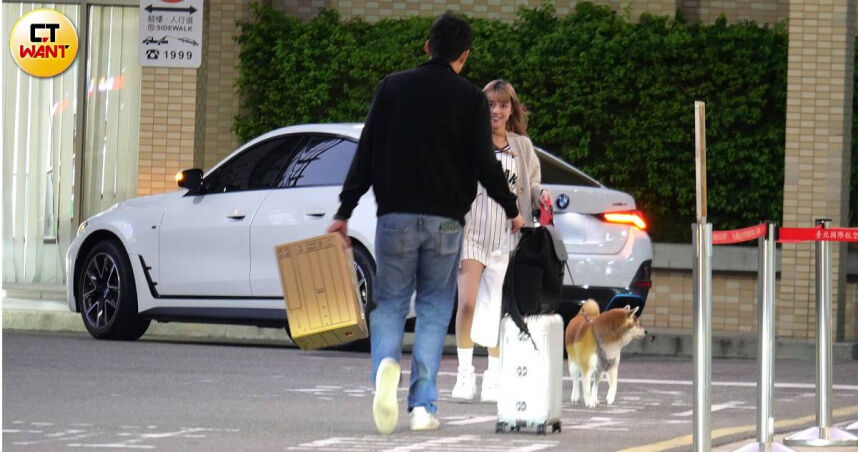 隨後由男子接手駕駛,先前往台北市民生社區一處公園,禹菡帶著柴犬瑞秋散步,而男方則在一旁整理車後行李箱。不到5分鐘結束遛狗行程後,兩人又前往附近洗衣店,男子下車送洗並取回衣物。晚間約6點,車輛再度返回稍早進出的住處,從行車路線與停靠動線判斷,男子對當地環境相當熟悉。