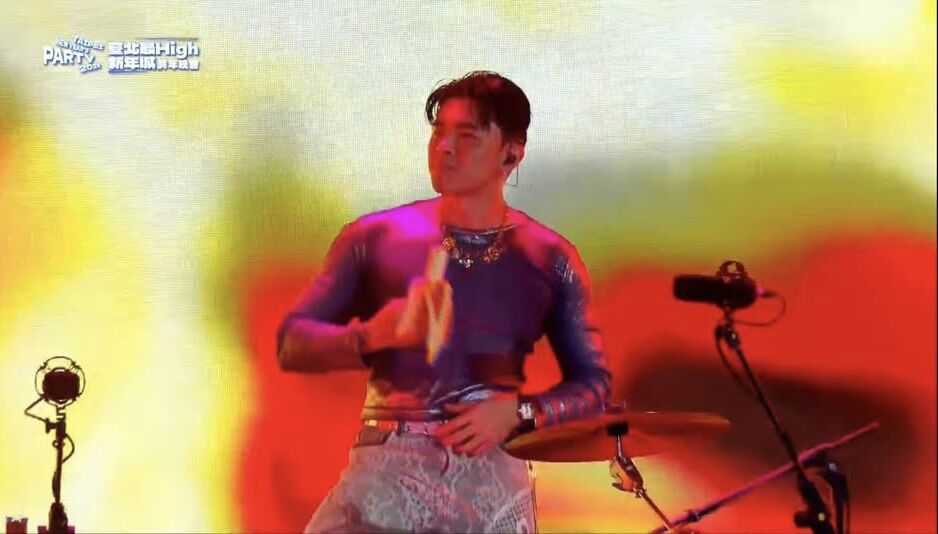 「臺北最High新年城-2026跨年晚會」今(31日)晚間七點熱鬧登場,稍早美秀集團率先帶來開場表演,即便外面下著雨,他們全身濕透,仍澆不息粉絲的熱情,全場跟著嗨唱。然而鼓手鍾錡演出到一半,突然拿出一根香蕉,當場在台上吃了起來,意外成為跨年最逗趣畫面。
