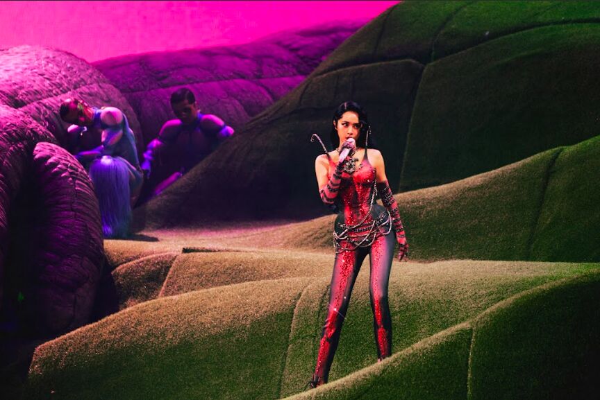 蔡依林形容辦演唱會就像多巴胺中毒在談戀愛,「一年幾次突然可以這樣跟大家戀愛三、四天。」蔡依林甜笑說:「每次熬夜隔天臉都是蠟黃、黃臉婆狀態,沒想到今天早上起來,天啊!還是一樣美,這不就是戀愛的狀態嗎?」引爆台下激動尖叫,蔡依林也對歌迷說:「來看完演唱會,你回去照照鏡子,是不是變漂亮了?」