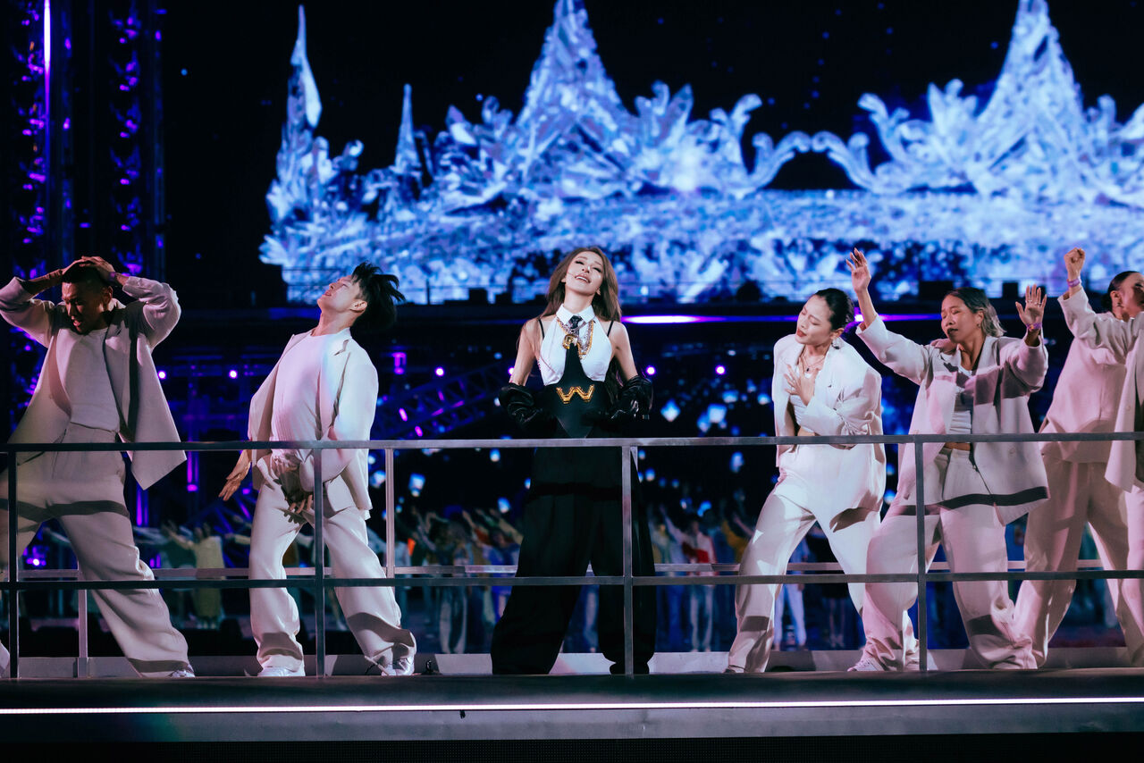 在整組表演中,〈遺失的心跳〉首次登上跨年舞台,成為情緒轉折與情感厚度的重要關鍵,她曾分享過去一次巡演正值跨年夜,卻因演出而錯過母親的來電,這段真實而私密的記憶,也正因跨年這個特殊時間節點,整段演出進一步被賦予「放下過去、用愛迎向未來」的情感意義,為即將到來的2026年注入力量,壓軸登場的〈愛的主打歌〉,採用花車巡迴式舞台動線設計,現場氣氛被持續點燃,五萬人齊聲大合唱的畫面震撼全場。
