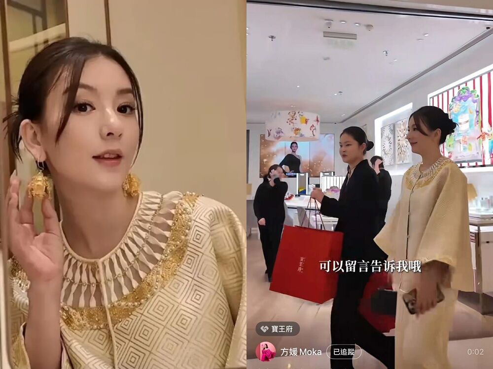 掃貨結束後,方媛滿臉笑容地拿出手機行動支付,影片最後,珠寶店員工幫忙提著3大袋戰利品送她離開。這趟豪氣的購物之旅引發網友熱議,有網友笑稱方媛刷老公的信用卡毫不手軟,大讚她購物眼光精明,還有人幫忙估算,如果當天看的金飾買下整套,估計要價人民幣上百萬。