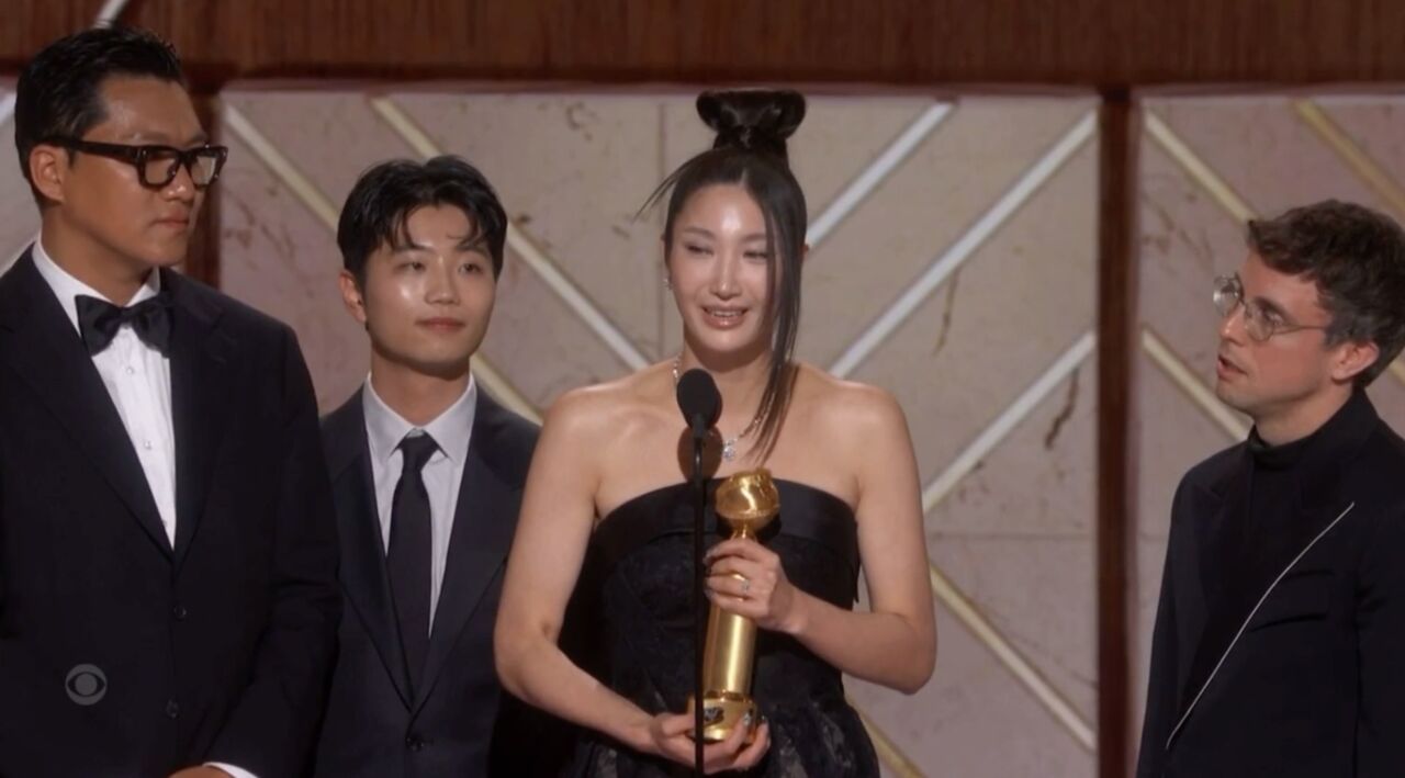 第83屆金球獎頒獎典禮於台灣時間12日上午9點登場,典禮在洛杉磯舉行,稍早頒發原創歌曲獎,最終由席捲全球的《Kpop 獵魔女團》的〈Golden〉拿下,為角色Rumi擔任歌唱配音,同時也是該曲創作人的Ejae感動走上頒獎台。