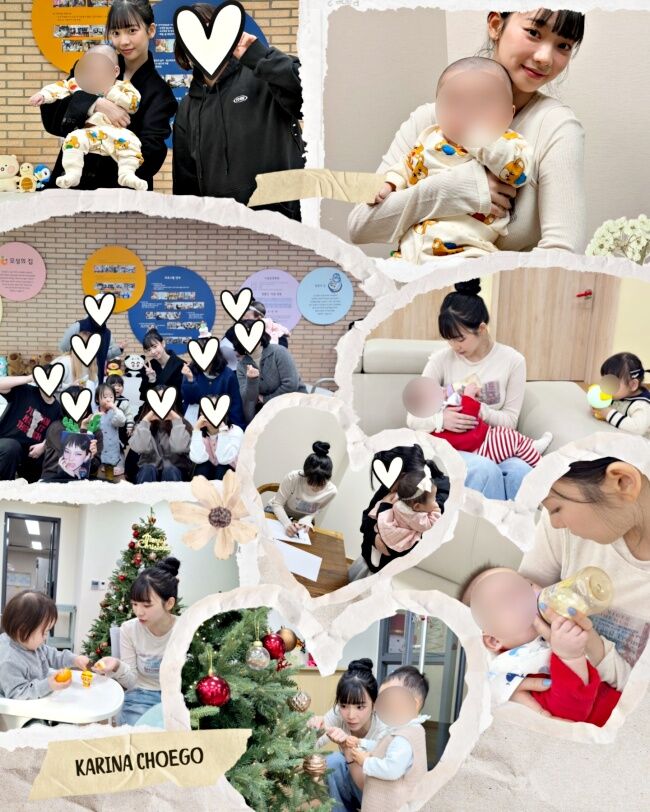 同時寫文透露Karina會與每一個寶寶眼神交流、為大家準備飯菜、陪伴玩耍,也開心同意簽名拍照,讓現場的媽咪們超開心表示:「大家因為Karina留下難忘的回憶」,其實生命之家是為了被剝奪自主權、流離失所等「單親母親與子女」所設置的日託中心,Karina抱著寶寶的超暖照片也立刻被瘋傳、登上韓媒報導,網友紛紛稱讚人美心善之餘,也笑稱:「私下真的變身拉斐爾修女了!」