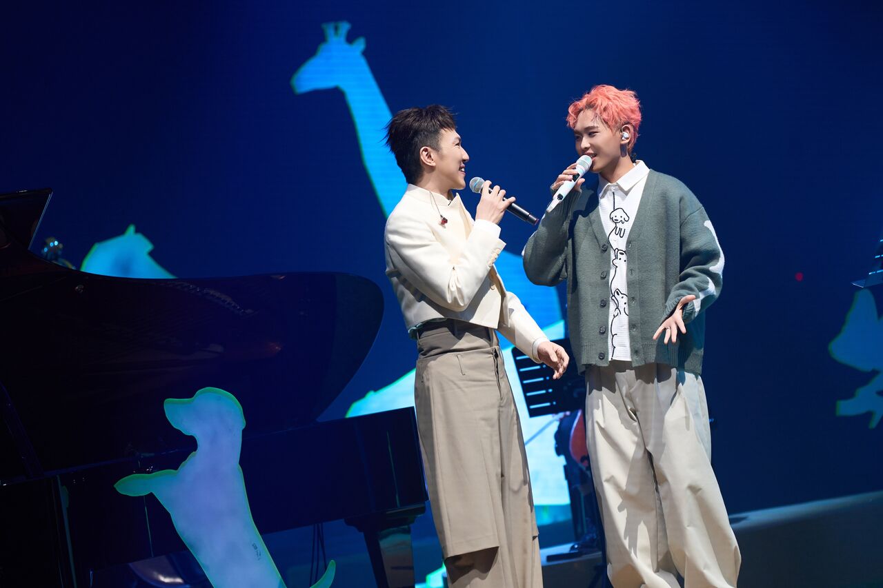 動物園裡也有最蘇打綠式的支持,團員們送上的花牌寫著「阿龔,我們愛你,你彈什麼都對!」被現場觀眾捕捉後立刻引起共鳴,直呼這是一段「有聲音的文字」,彷彿光看就能聽見熟悉的團員打屁語氣。更溫暖的是,在巡演中曾讓全場集體淚崩的「妃妃視角口白」,團員小威當晚也帶著「童聲本人」兒子小 Moon 悄悄坐在觀眾席中支持。整場演出導演則由一路相伴巡演的團員馨儀掌舵,讓觀眾開玩笑說有這樣「最強大的獵豹守護」,共同促成這片美好的動物音樂宇宙。