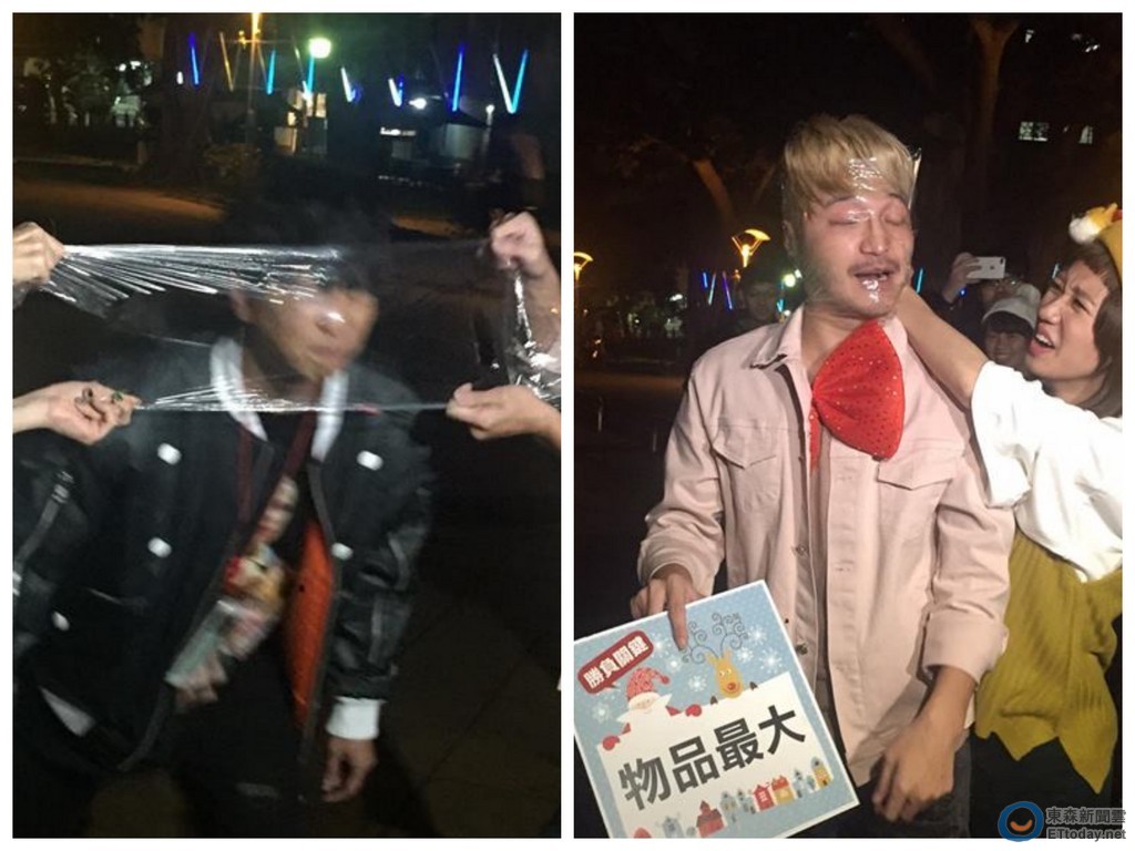 「小鬼」黃鴻升23日到新莊輔仁大學《星光雲!Run新聞》直播,隨機抽現場粉絲拿出身上的聖誕禮物交換,有醫學系學生隨身帶保鮮膜,主持人Kid、Lulu與小鬼一時興起玩起「衝破保鮮膜」遊戲,小鬼及Kid不計衝破,臉部扭曲的模樣讓全場笑翻。