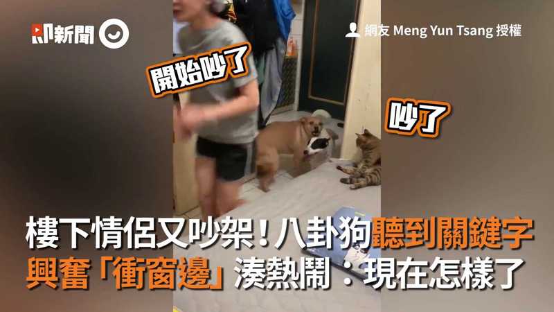 樓下情侶又吵架!八卦狗聽到關鍵字 興奮「衝窗邊」湊熱鬧:現在怎樣了