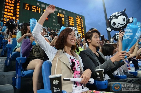 陳庭妮和胡宇威日前到桃園看棒球,兩人在外野看台上與觀眾們一起興奮吼叫,現場氣氛相當激昂;而這時小倆口正好遇到剛好有人在求婚,男生笑說:「真好,如果是在球場裡會更棒!」而妮妮則是露出一臉幸福的神情說:「要幸福喔!」