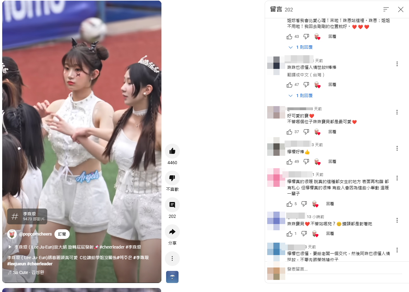 「AI女神」李珠珢加入富邦悍將啦啦隊Fubon Angels,卻遭週刊踢爆耍大牌,因為無法站C位而情緒失控、拒絕賽前表演等等。對此,有網友翻出某次應援場上的側拍影片,拍到李珠珢低調的善良舉動,被認為是打臉週刊爆料。