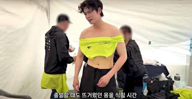 最終只花了57分鐘就跑完11公里的車銀優,臉曬紅、滿身汗、大口喘氣卻一點都不狼狽,依舊像拍大片一樣顏值在線,甚至更荷爾蒙爆發,走進帳篷脫掉上衣灌水的「性感畫面」也全被拍下,他也感嘆:「參與了健康的事真的很開心」,畫面公開立刻引爆轟動,網友紛紛讚嘆:「連背影都帥氣」、「車銀優做什麼事都很帥氣」、「攝影師也很厲害,機器超重。」