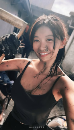 ▲祈錦鈅穿運動內衣救災。(圖/翻攝自Instagram/maxinechiii)