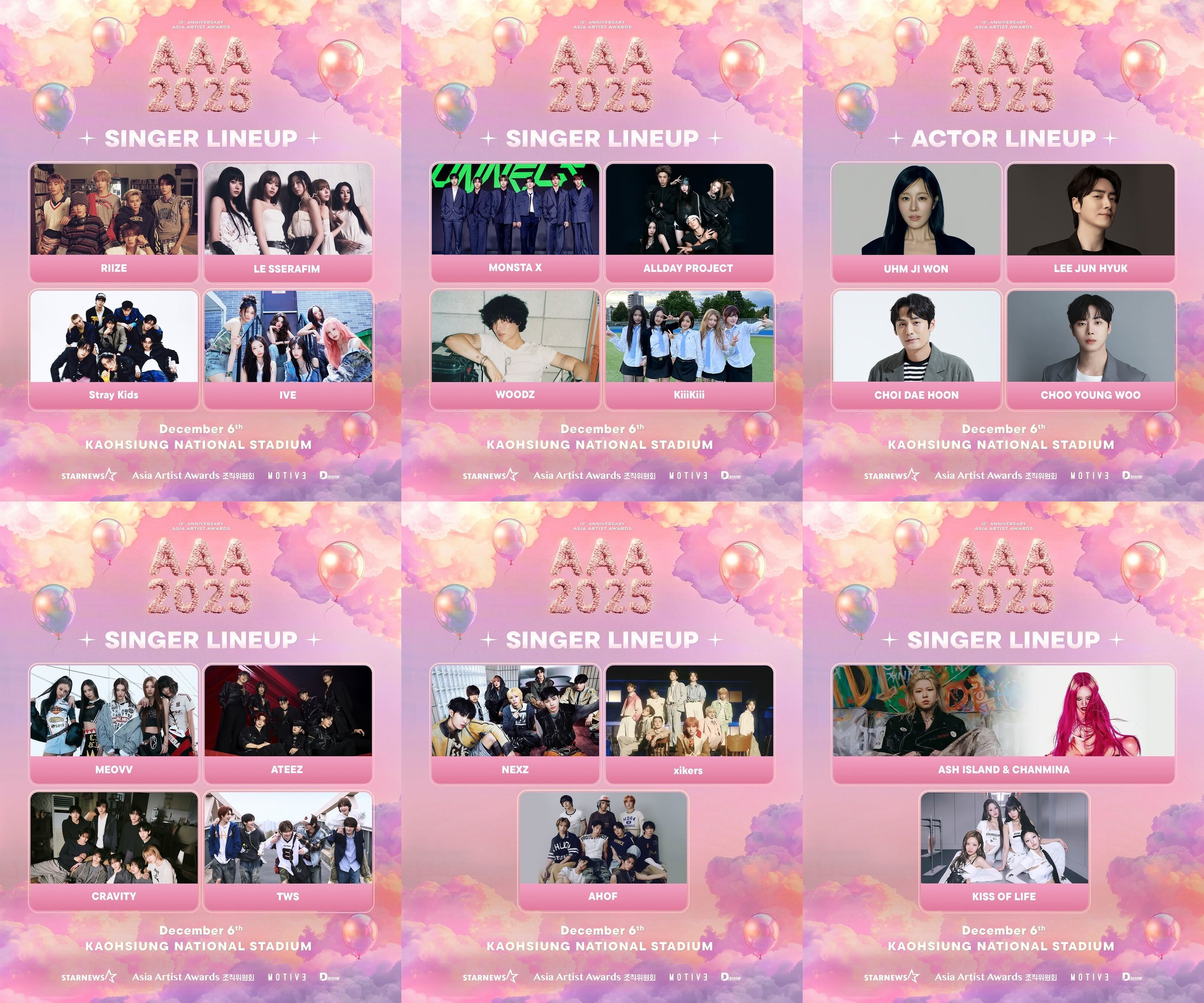 年度備受矚目的韓國指標性大型娛樂盛事「Asia Artist Awards(AAA頒獎典禮)」今年迎來成立十週年,典禮將首次移師高雄舉辦,將於12月6日在高雄國家體育場盛大登場。AAA頒獎典禮自2016年起啟動國際巡迴,今年選擇台灣作為10週年舞台,對台灣粉絲及整體娛樂圈具有極大象徵意義,因十週年規模空前,主辦單位最終敲定可容納超過5萬名觀眾的高雄國家體育場,以提供更大的觀演空間與完整舞台設計,預計成為史上規模最大的一屆。