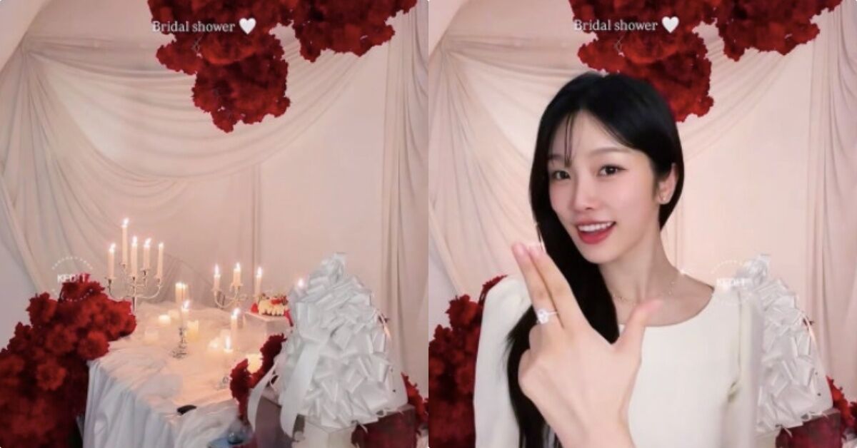 近日智賢無預警在個人IG限時動態上傳一則影片,背景是用大紅玫瑰花束裝飾的浪漫白色空間,桌上還點著蠟燭、擺放蛋糕,她本人則是穿著一席純白洋裝美美入鏡,影片字幕還直接打上「Bridal Shower」,似乎就是在婚前單身派對的會場拍攝的,智賢還與「戴著無名指鑽戒的手」特別互動,影片一出馬上被瘋傳,紛紛猜測:「智賢結婚了嗎?」「智賢、元奎上對節目了!」「又一對換乘夫妻!」。