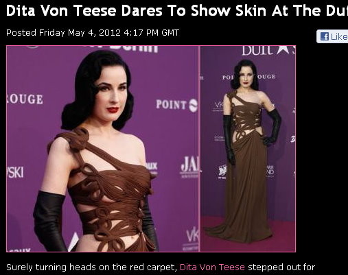 世界首席脫衣舞孃蒂塔凡提斯(Dita Von Teese ),4日晚間出席號稱香水界奧斯卡的「Duftstars Awards」頒獎典禮,她以一襲充滿設計感的「鏤空裝」驚豔全場,再次展現她「露而不低俗,脫卻仍高雅」的特質。