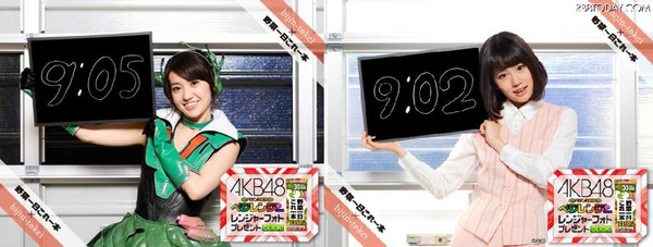 「美人時計」在日本流行,在韓、台都蔚為風潮,但一直以來「美人時計」都找路邊素人美女作為報時對象,至今已經有三種不同類別供人下載。這次AKB48穿著孩子氣的戰隊服入境,儼然成為一股新風潮。