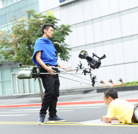 ▲柯震東拍MV腰際綁上10公斤鐵架,前端反裝一具攝影機對著拍。(圖/索尼)