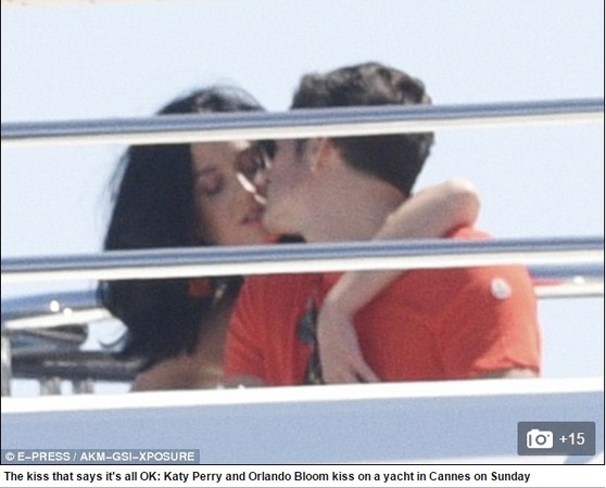 據英媒《每日郵報》報導,凱蒂佩芮為出席19日於坎城的演出,提早飛往當地準備,奧蘭多布魯也一路愛相隨,她更把握工作空檔,陪同男友搭乘遊艇出遊,照片中,她親暱地勾住對方肩膀、互咬耳朵,甚至甜蜜獻吻,兩人感情絲毫不受緋聞影響。