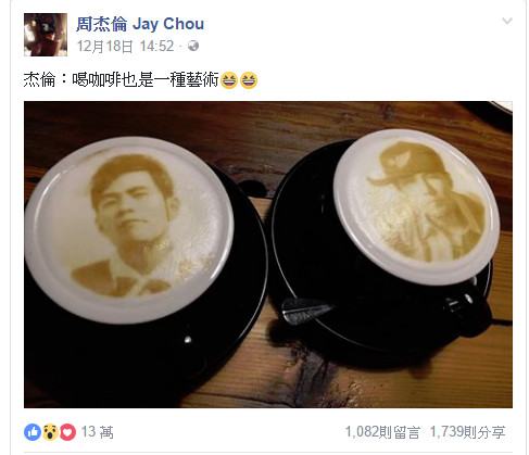 ▲▼周杰倫在臉書PO出印有自己肖像的咖啡和湯圓。(圖/翻攝自周杰倫臉書)