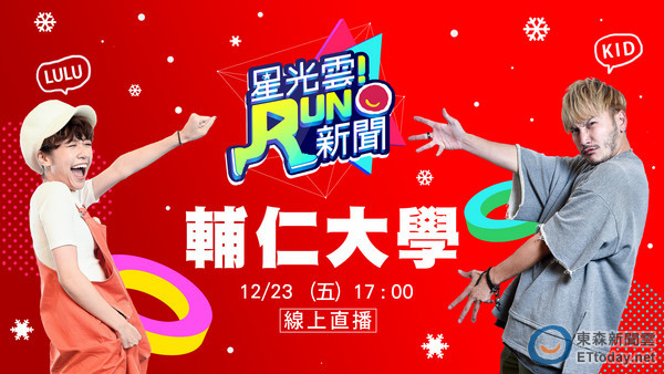 「叮叮噹叮叮噹鈴聲多響亮~」耶!一年一度的聖誕節即將來臨!本週《星光雲!RUN新聞》就要RUN到新北市最有聖誕氣氛的「天主教輔仁大學」!陪大家一起歡度聖誕節!不只主持人KID、LULU合體,還有特別來賓哦!他們會帶來什麼聖誕驚喜呢?23日下午5點正式開播,快來和我們一起玩直播做互動!
