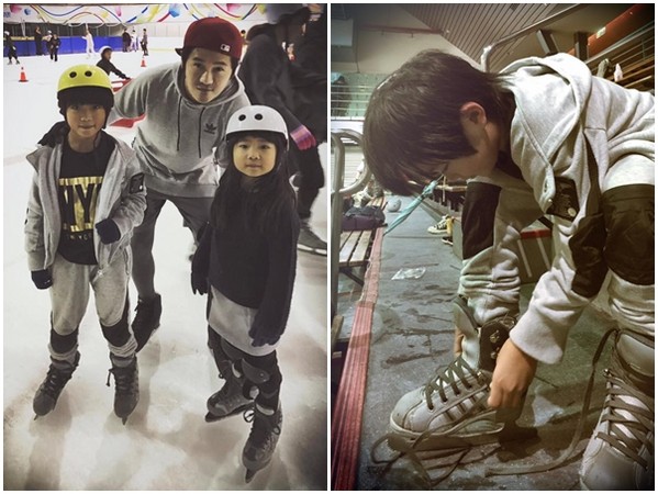 ▲曹格一家人最近都迷上溜冰。(圖/取自曹格臉書)