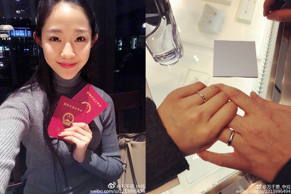 ▲▼三寶老師在萬千惠生日當天登記結婚。(圖/翻攝自萬千惠微博)
