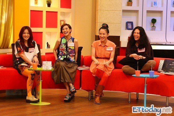 ▲郭采潔日前與好友徐佳瑩(左一)、魏如萱(右一)、阿霈(右二)一起上緯來《姐妹淘心話》。(圖/緯來提供)