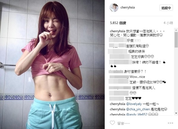 畫面中,夏如芝穿著輕便家居服,搭配藍綠色短褲,在鏡頭前輕咬手指,閉起單邊眼睛,擺出十分撩人的表情。更引人注意的是,她伸手將上衣撩起至胸下部位,大方展露S型蠻腰,以及堅實11字腹肌,展現平時苦練許久的成果,驚豔眾人。