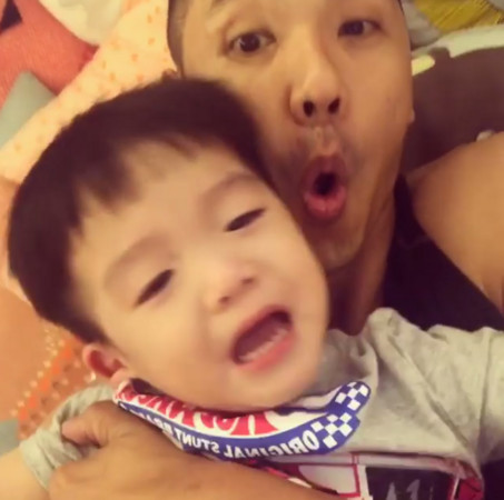 飛飛被黑人抱住躺著的情況下,似乎覺得很煩躁所以不停想掙脫,但愛鬧人的爸爸不僅不放開,還用娃娃音直呼「怎麼這樣子,飛飛在哪裡,說嗨~我纏住了,纏住了」,讓他忍不住開始嗚哇大哭。